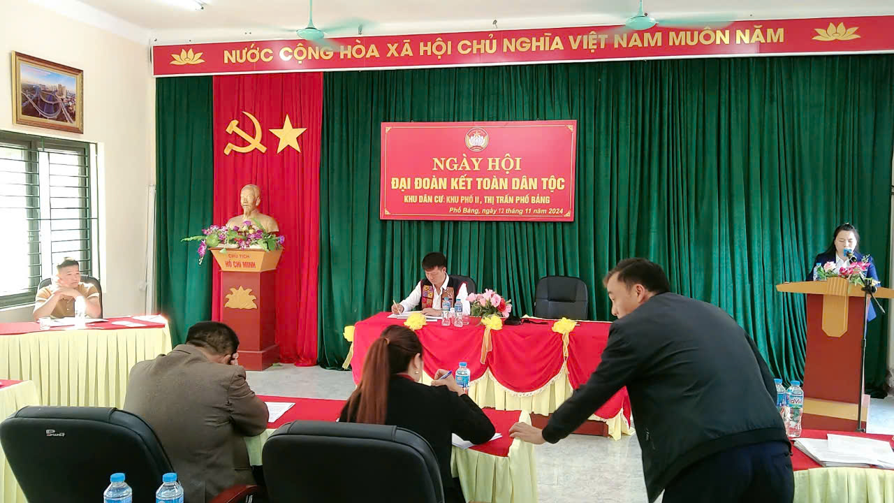 TTTĐT - Chiều 12/11/2024, Khu Phố II, Thị trấn Phố Bảng, Huyện Đồng Văn, tỉnh Hà Giang tổ chức Ngày hội Đại đoàn kết toàn dân tộc năm 2024. Đây là Khu điểm của Thị trấn Phố Bảng, Huyện Đồng Văn được chọn tổ chức ngày hội nhân kỷ niệm 94 năm Ngày thành lập Mặt trận Dân tộc thống nhất Việt Nam (18/11/1930 - 18/11/2024). Đến dự có đồng chí Thò Thị Kía - Phó bí thư thường trực Đản Uỷ thị trấn, Chủ tịch UBMTTQVN thị trấn Mao Văn Bình; Phó Chủ tịch Thường trực UBND thị trấn Vàng Sè Dia.