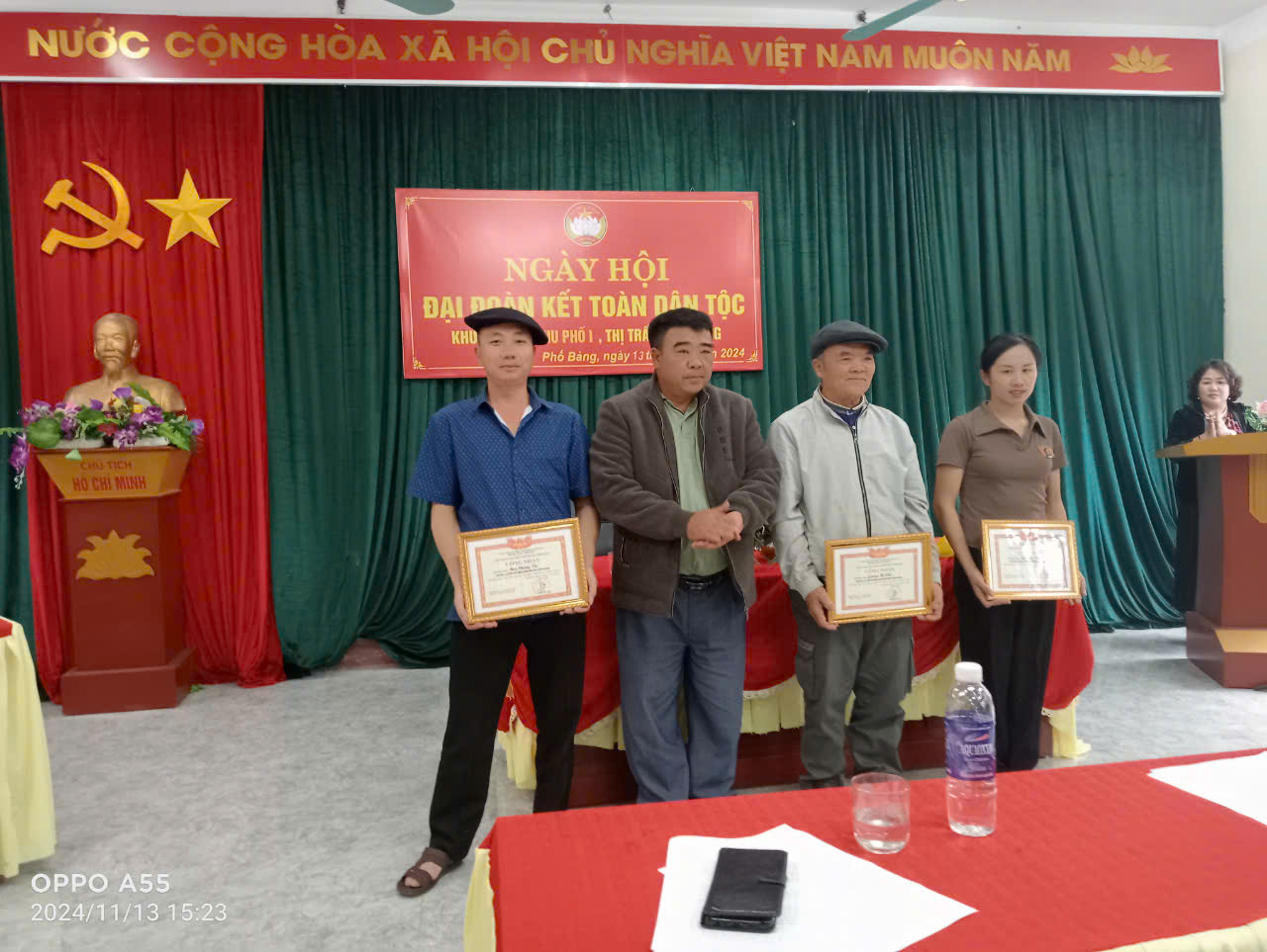Tại ngày hội UBND thị trấn Phố Bảng đã trao tặng giấy khen cho 03 gia đình tiêu biểu trong phong trào “Toàn dân đoàn kết xây dựng nông thôn mới, đô thị văn minh”.