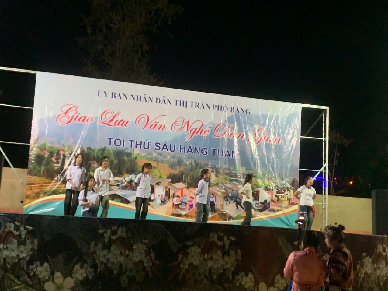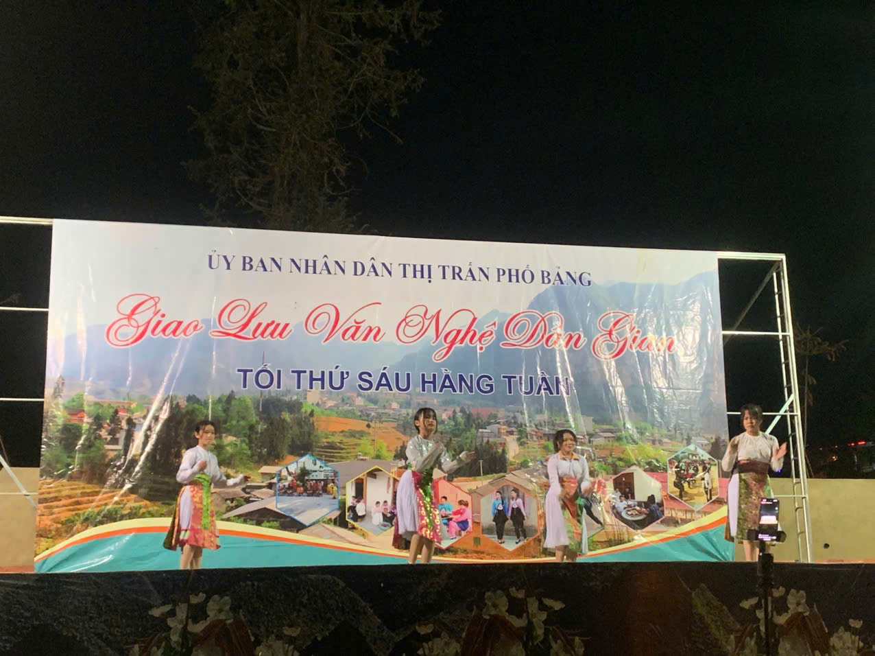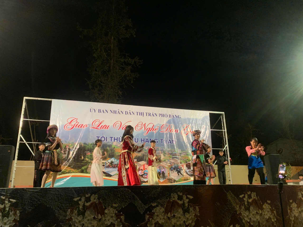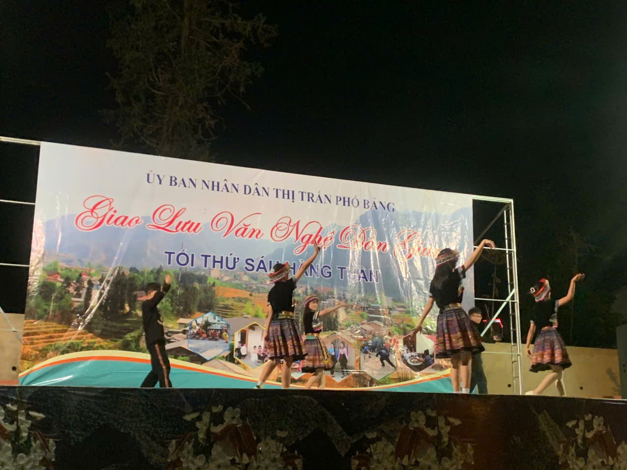 Đêm giao lưu diễn ra với các tiết mục của Đoàn Thanh Niên thị trấn đan xen với các tiết mục đến từ đội văn nghệ khu Phố II vô cùng sôi động cùng với hàng loạt hoạt động văn nghệ, diễn xướng dân gian mang đậm bản sắc văn hoá truyền thống của đồng bào các dân tộc trên địa bàn thị trấn. Mở đầu cho đêm văn nghệ dân gian là tiết mục múa tốp ca ” Máu Đỏ Da Vàng” do các em trường PTDTNT & THCS Phố Bảng thể hiện nhận được sự cổ vũ nhiệt tình đến từ quý bà con nhân dân và các em học sinh.