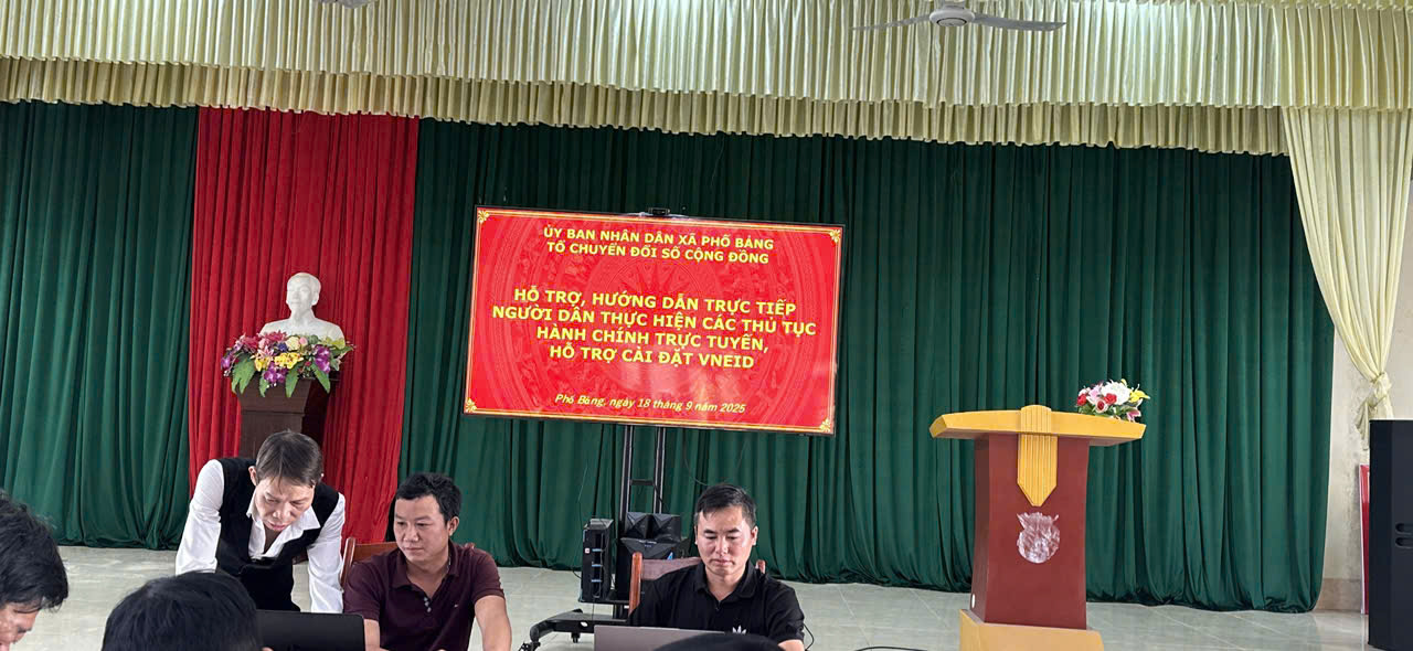 Nhằm nâng cao hiệu quả cải cách hành chính và thúc đẩy chuyển đổi số, Ngày 19/9/2025 UBND xã Phố Bảng chỉ đạo tổ chuyển đổi số cộng đồng xuống các thôn trên địa bàn xã trực tiếp hướng dẫn, hỗ trợ người dân thực hiện các thủ tục hành chính trực tuyến và cài đặt VneID.