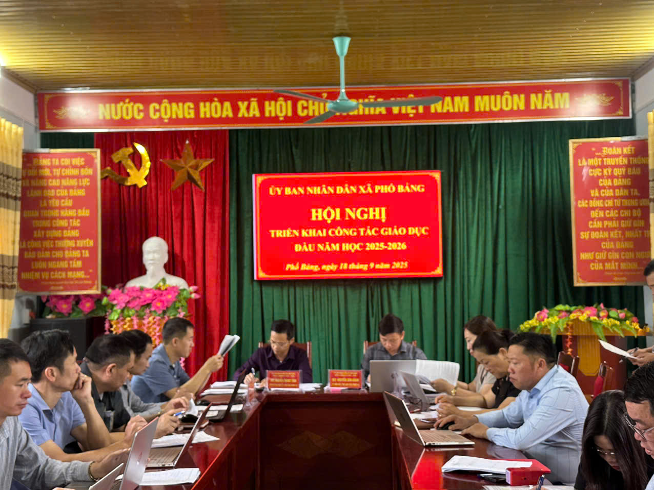UBND xã Phố Bảng tổ chức hội nghị triển khai công tác giáo dục năm học 2025 – 2026 Sáng ngày 18 tháng 9 năm 2025, tại hội trường UBND xã Phố Bảng, UBND xã phối hợp với Ban giám hiệu các trường học trên địa bàn tổ chức Hội nghị triển khai công tác giáo dục đầu năm học 2025 – 2026. Tham dự hội nghị có các đồng chí: Phan Thị Lan – Phó Bí thư thường trực Đảng ủy xã; Đ/c Hoàng Văn Thạch – PCT HĐND xã; Đ/c Nguyễn Thanh Tuân - Phó Bí thư, Chủ tịch UBND xã cùng các đồng chí trong Ban Thường vụ, Ban Chấp hành Đảng bộ xã, lãnh đạo các phòng ban chuyên môn, Ban giám hiệu các đơn vị trường học.