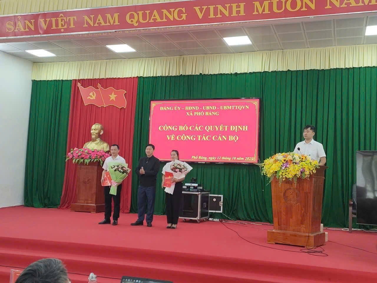 Tại hội nghị công bố: điều động đồng chí Hoàng Văn Cần - Ủy viên Ban Chấp hành Đảng bộ xã, Phó Trưởng Ban Xây dựng Đảng, đến nhận công tác tại Văn phòng HĐND & UBND xã, để bổ nhiệm giữ chức Phó Trưởng phòng Kinh tế – Xã hội xã Phố Bảng; Điều động đồng chí Thào Thị Kía - Phó Chánh Văn phòng Đảng ủy đến nhận công tác tại UBMTTQ Việt Nam xã, giới thiệu với BCH hội Nông dân xã bầu giữ chức Phó Chủ tịch Hội Nông dân xã; Điều động đồng chí Hà Văn Tuyến - Phó Trưởng phòng Kinh tế, đến công tác tại Trung tâm Phục vụ hành chính công, giữ chức Phó Giám đốc Trung tâm; Điều động đồng chí Dương Văn Nghị - Chánh Văn phòng HĐND & UBND, đến nhận công tác tại Trung tâm Phục vụ hành chính công xã. Đồng thời giao Quyền Chánh Văn phòng HĐND&UBND xã cho đồng chí Tăng Văn Chùa - Phó Chánh Văn phòng HĐND&UBND xã cho đến khi kiện toàn được chức danh chính thức.