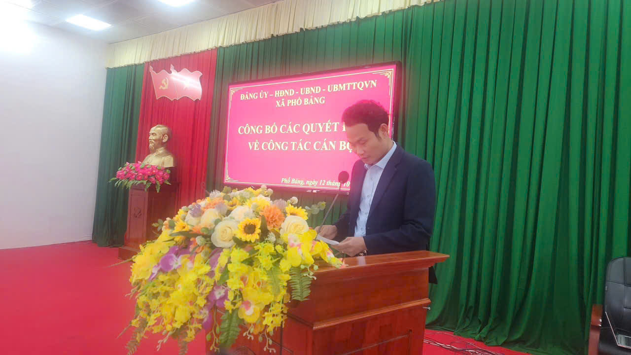 Phát biểu tại hội nghị, đồng chí Giàng Xuân Thắng – Bí thư Đảng ủy, Chủ tịch HĐND xã nhấn mạnh: Việc sắp xếp, điều động, bố trí cán bộ lần này có ý nghĩa đặc biệt quan trọng trong bối cảnh xã Phố Bảng đang thực hiện mô hình chính quyền địa phương 2 cấp. Đây là bước đi cần thiết nhằm kiện toàn tổ chức, phát huy năng lực đội ngũ cán bộ, đảm bảo hoạt động hiệu quả, đáp ứng yêu cầu nhiệm vụ trong giai đoạn mới. Đồng chí đề nghị các đồng chí cán bộ, công chức được phân công ở vị trí mới phát huy phẩm chất, năng lực, tinh thần trách nhiệm, đoàn kết, đồng thời mong các đơn vị tiếp nhận tạo điều kiện thuận lợi để cán bộ nhanh chóng ổn định, hoàn thành tốt nhiệm vụ được giao. Buổi lễ diễn ra trong không khí trang trọng, đoàn kết và phấn khởi, thể hiện sự thống nhất cao trong công tác tổ chức cán bộ của cấp ủy, chính quyền xã Phố Bảng. Các quyết định được công bố là bước đi quan trọng trong quá trình sắp xếp, kiện toàn tổ chức bộ máy, góp phần nâng cao chất lượng đội ngũ cán bộ và thực hiện thắng lợi nhiệm vụ phát triển kinh tế – xã hội năm 2025.