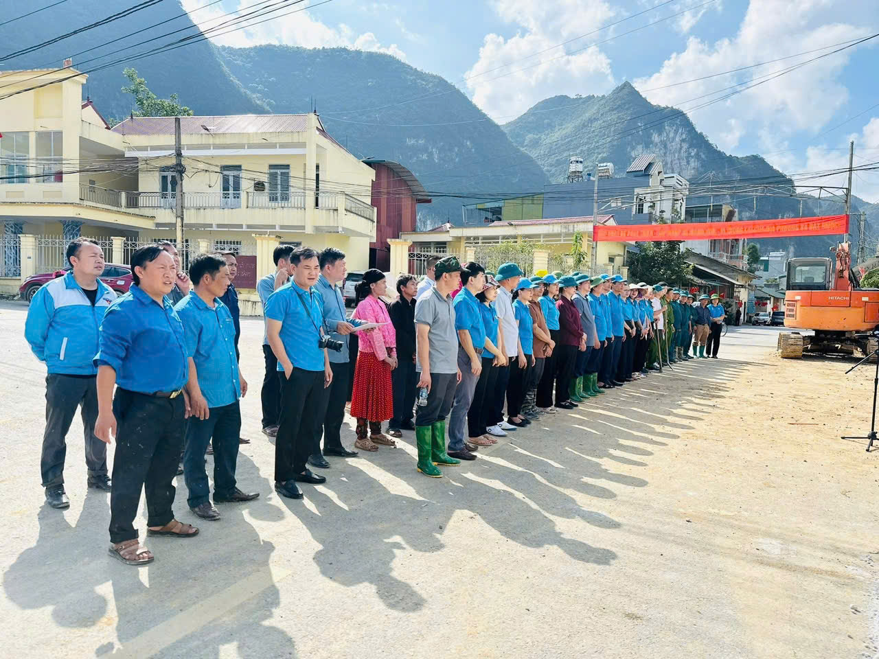 Tại lễ khởi công, các đại biểu, cán bộ, đoàn viên công đoàn, lực lượng công an, biên phòng và nhân dân đã trực tiếp tham gia thi công, đổ bê tông tuyến đường tại thôn Phố Bảng 1 với tổng chiều dài 120m, chiều rộng 3m. Với phương châm “Nhà nước và nhân dân cùng làm”, công trình có ý nghĩa thiết thực, đáp ứng nguyện vọng của nhân dân, góp phần cải thiện hạ tầng giao thông, phục vụ đời sống sinh hoạt và sản xuất.