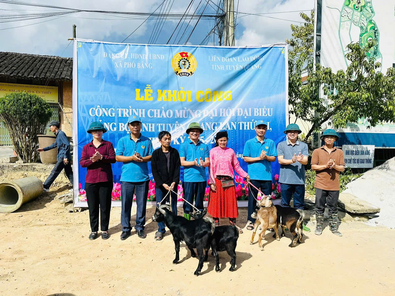 Dịp này, Liên đoàn Lao động tỉnh đã trao tặng 130 triệu đồng hỗ trợ thôn Phố Bảng 1 xây dựng công trình giao thông và trao 2 cặp dê sinh sản cho 2 hộ gia đình có hoàn cảnh khó khăn. Những phần quà mang ý nghĩa thiết thực, góp phần giúp các hộ có thêm điều kiện phát triển kinh tế, ổn định cuộc sống, vươn lên thoát nghèo, đồng thời thể hiện vai trò chăm lo đời sống đoàn viên, người lao động và nhân dân của tổ chức công đoàn. Hoạt động khởi công và trao quà tại xã Phố Bảng là minh chứng sinh động cho tinh thần thi đua yêu nước, tạo khí thế sôi nổi, lập thành tích chào mừng Đại hội đại biểu Đảng bộ tỉnh Tuyên Quang lần thứ XII, nhiệm kỳ 2025-2030./.