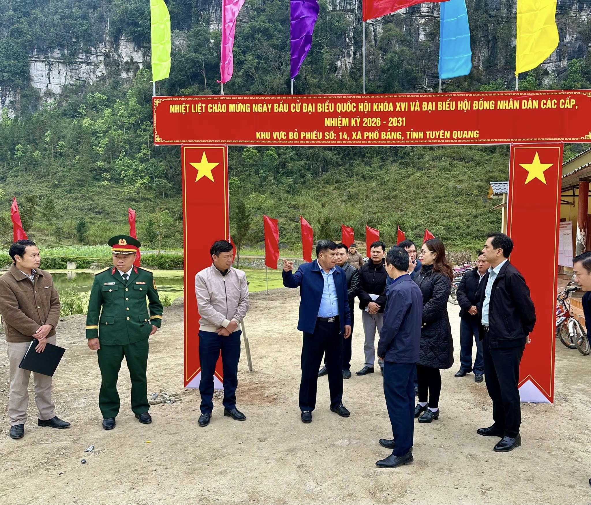 TTĐT - Thực hiện kế hoạch kiểm tra công tác chuẩn bị bầu cử đại biểu Quốc hội khóa XVI và đại biểu HĐND các cấp nhiệm kỳ 2026–2031, sáng ngày 5/3, đồng chí Nguyễn Khánh Lâm, Uỷ viên Ban Chấp hành Đảng bộ tỉnh, Giám đốc Sở Tư pháp tỉnh Tuyên Quang, Uỷ viên Ủy ban Bầu cử tỉnh đã có buổi kiểm tra tại xã Phố Bảng.